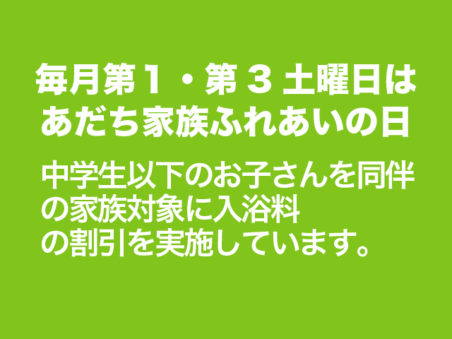 足立区の後援により、対象の方は特別入浴料でご利用いただけます♪