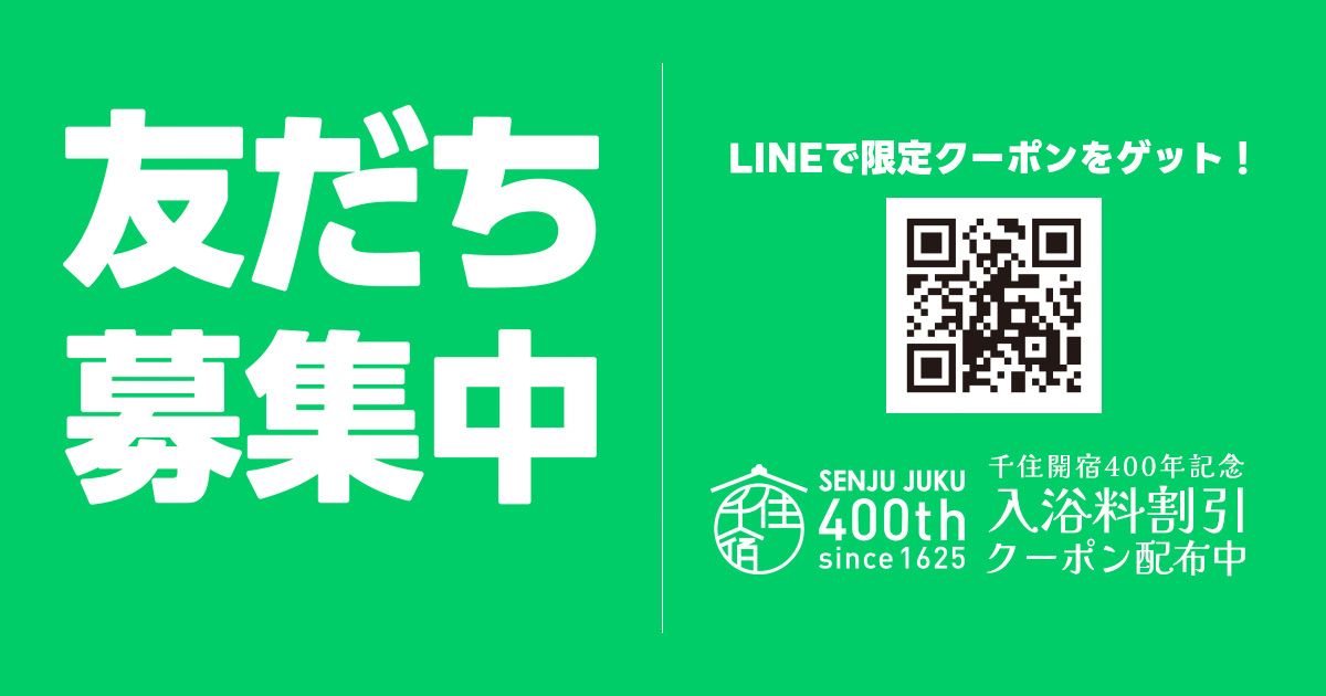 足立区の後援により、対象の方は特別入浴料でご利用いただけます♪