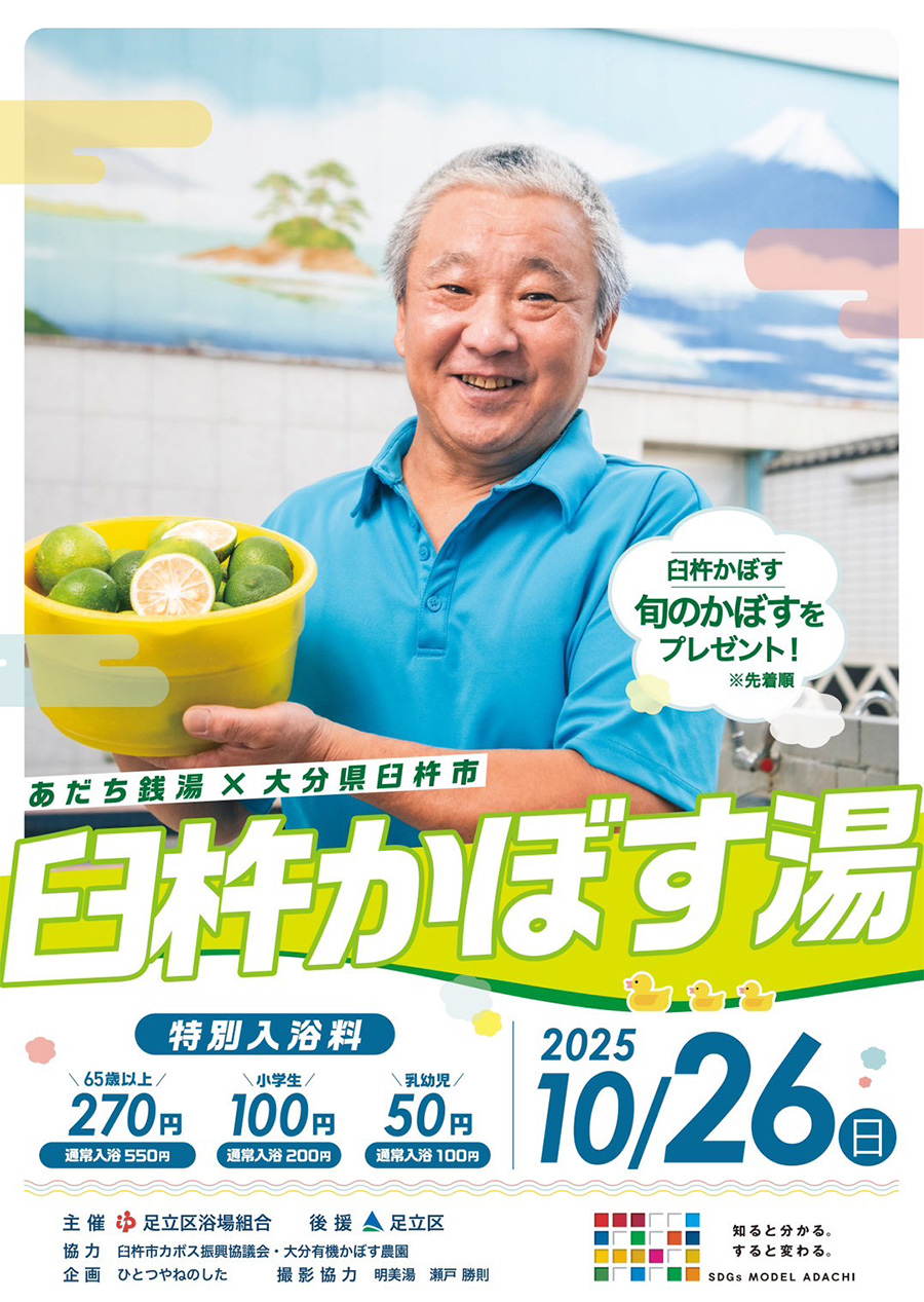 足立区内の銭湯全軒で「臼杵かぼす」を数量限定でプレゼント!お早めにどうぞ
