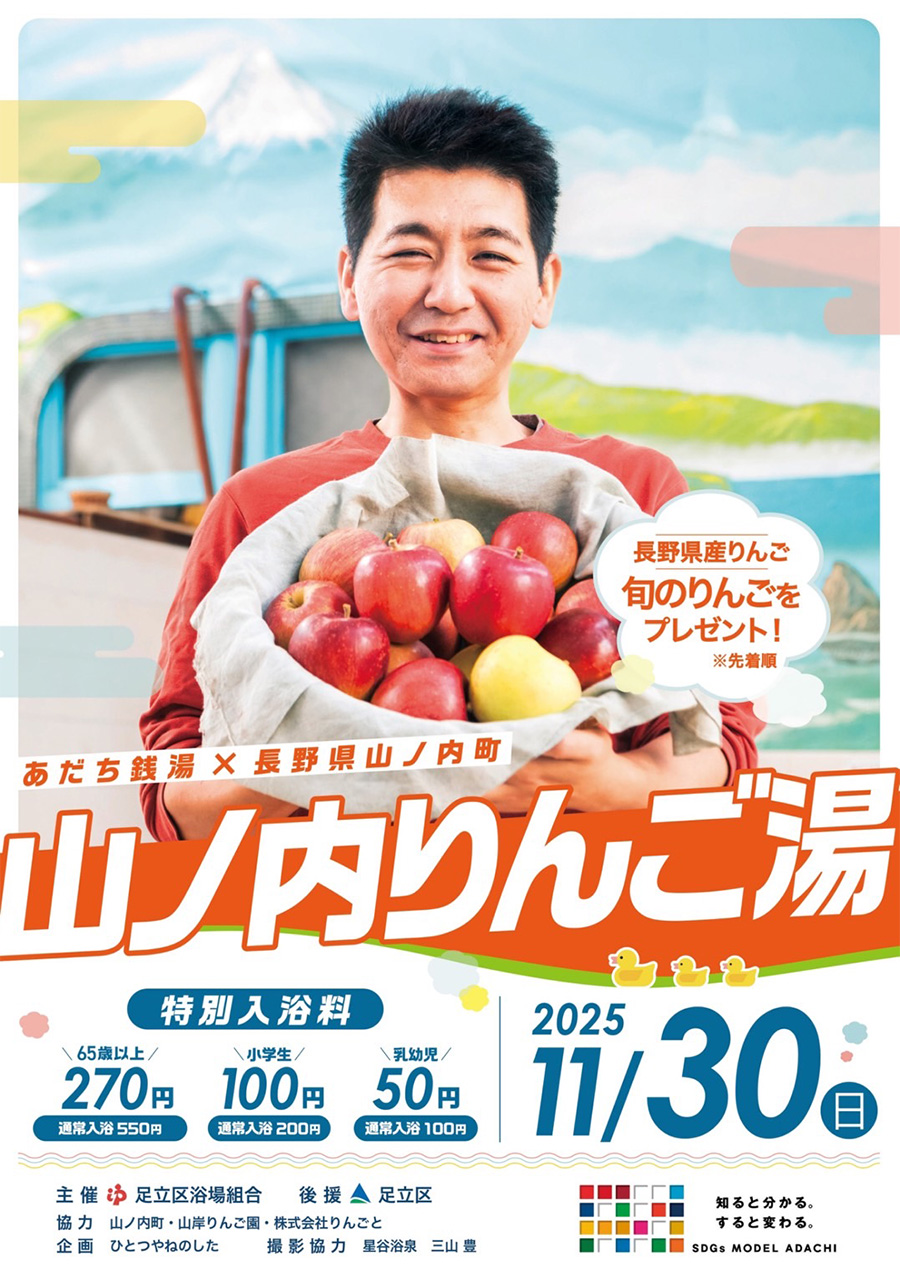 足立区内の銭湯全軒で「長野県産りんご」を数量限定でプレゼント!お早めにどうぞ